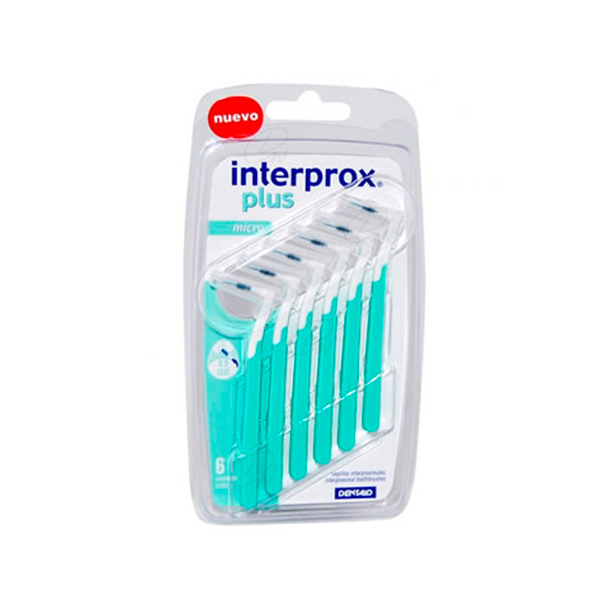 Cepillo interdental para la limpieza de espacios muy pequeños. Parte superior del mango en ángulo. Mango corto.
