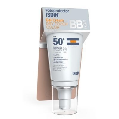 Fotoprotector facial gel crema muy alta protección. Toque seco. Matificante. Pieles normales y grasas, sensibles al sol, manchas pigmentarias y alteraciones cutáneas debidas al sol. Resistente al agua. Proporciona luminosidad a la piel y un acabado uniforme y mate.